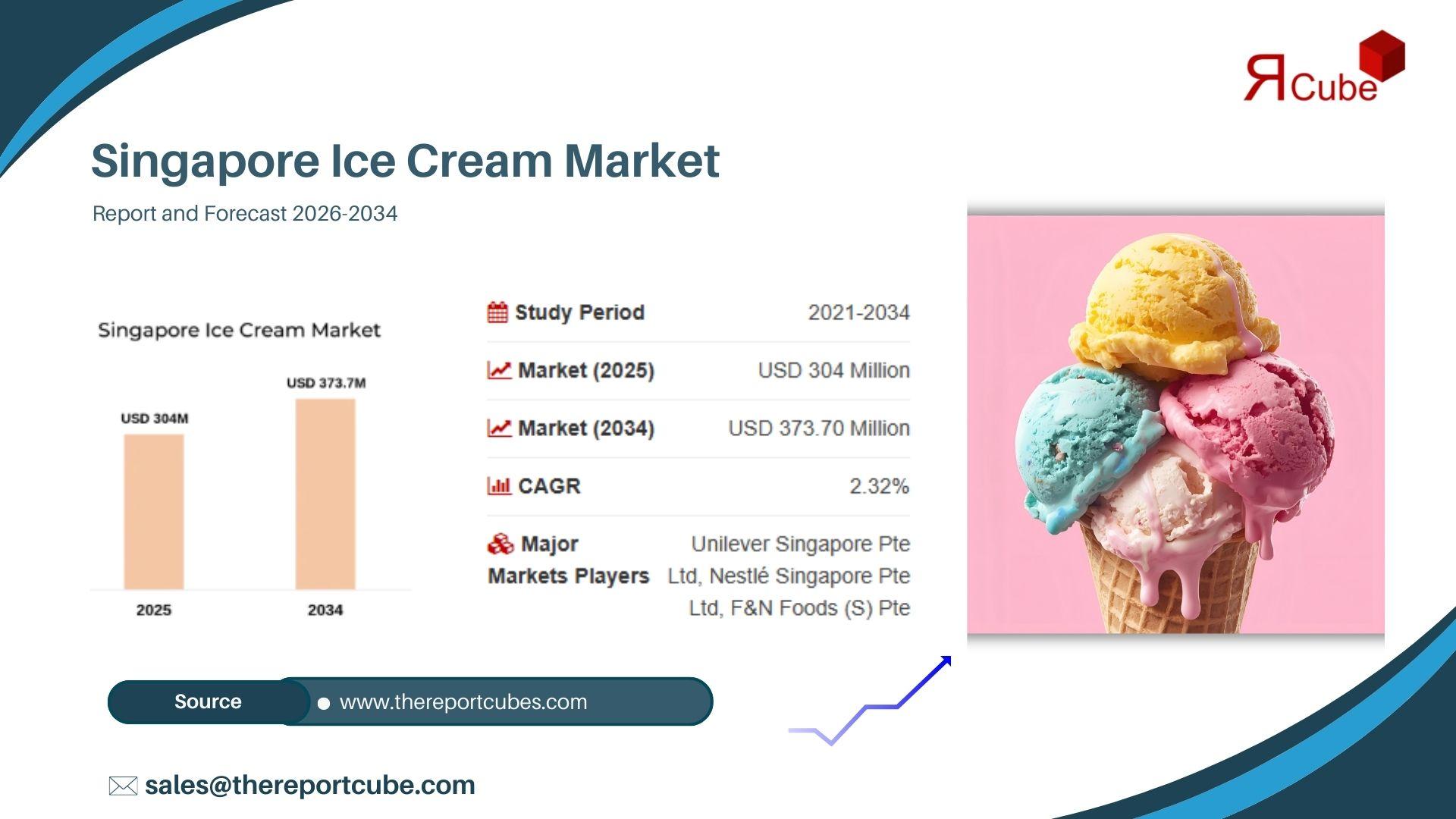 The Singapore Ice Cream Market is projected to reach USD 373.70 Million by 2034, expanding at a compound annual growth rate (CAGR) of 2.32% during the forecast period 2026-2034. According to the latest industry analysis published by The Report Cube, the market was valued at USD 304 Million in 2025.