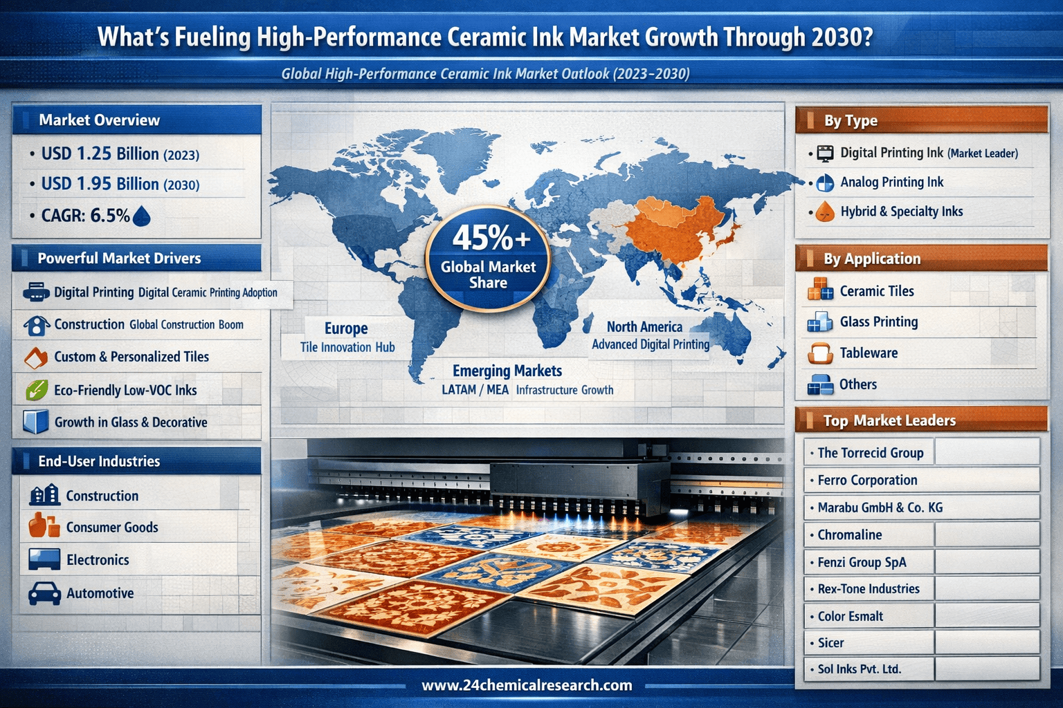 According to 24Chemical Research, Global High-performance Ceramic Ink market was valued at USD 1.25 billion in 2023 and is projected to reach USD 1.95 billion by 2030, exhibiting a remarkable CAGR of 6.5% during the forecast period.