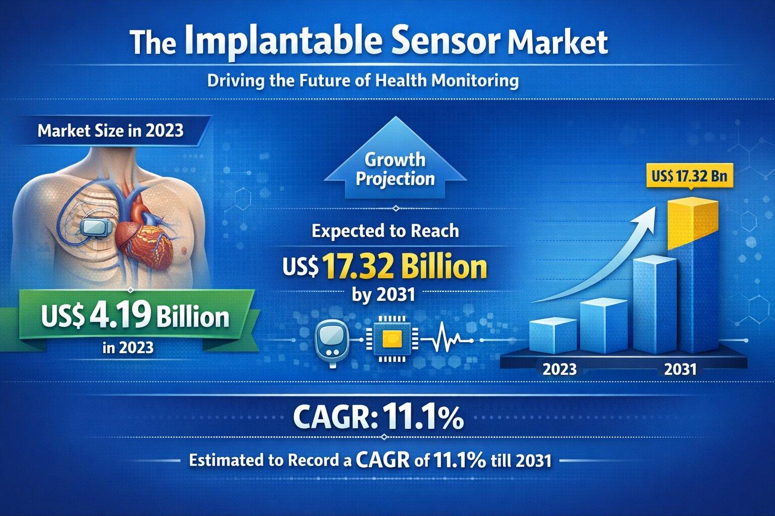 Implantable Sensor Market Size to Reach US$ 17.32 Billion by 2031 | 11.1% CAGR Forecast Analysis