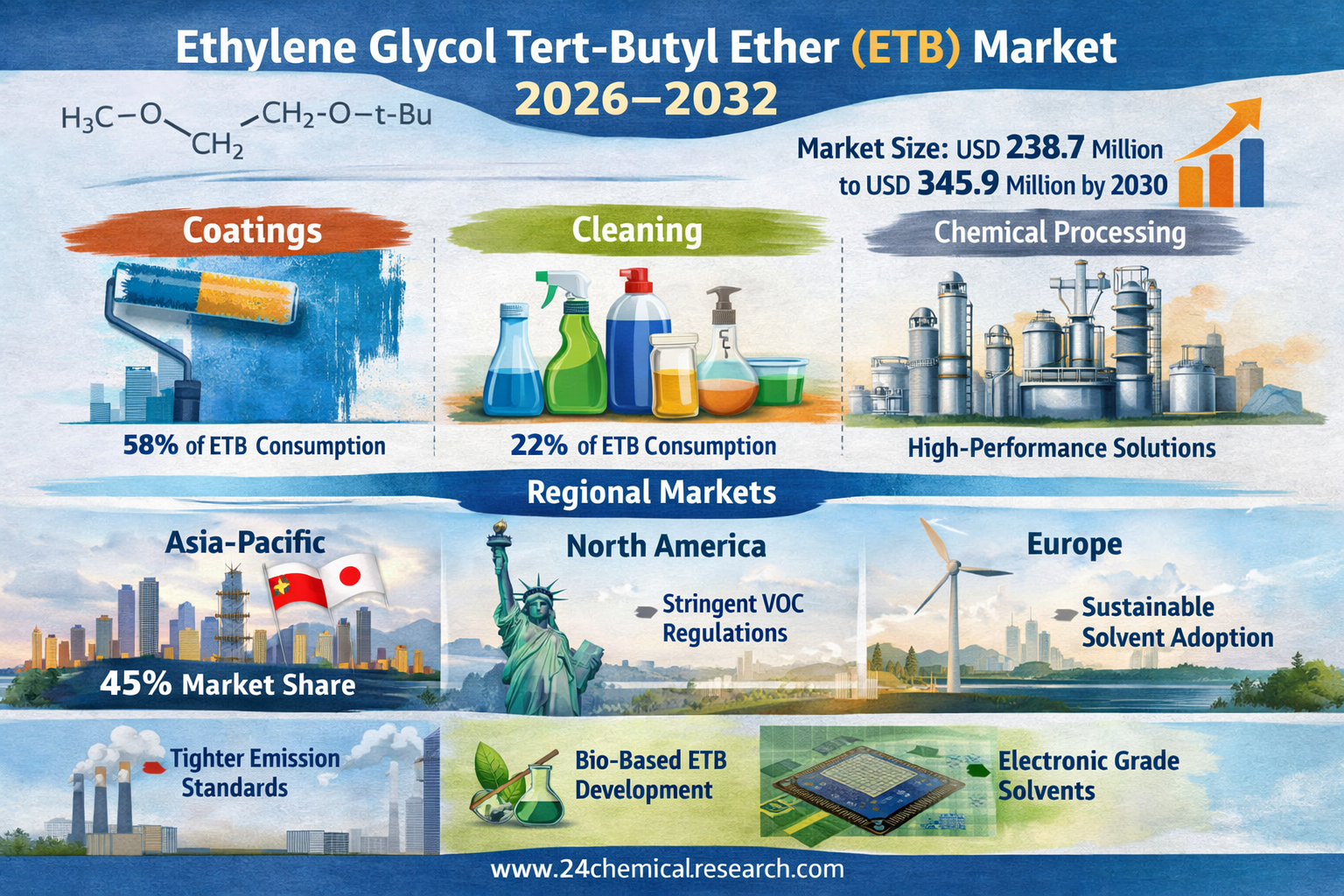 Global Ethylene Glycol Tert-Butyl Ether (ETB) Market to Reach USD 345.9 Million by 2030 Driven by Demand for Sustainable Coating Solvents
