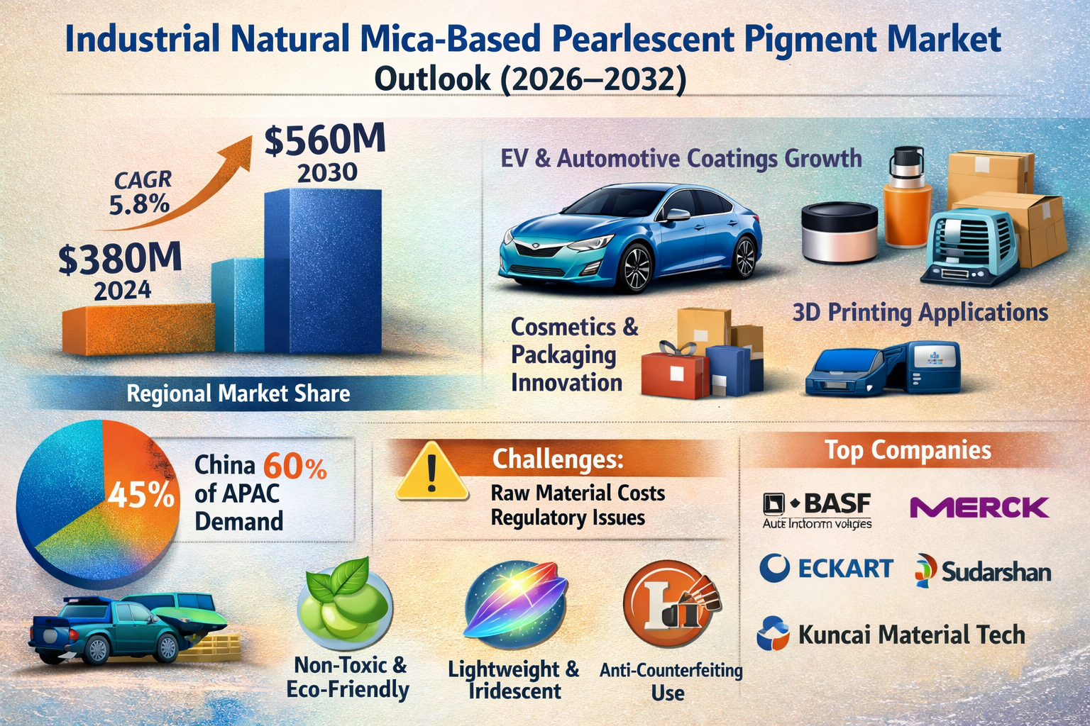 Industrial Natural Mica-Based Pearlescent Pigment Market to Reach USD 560 Million by 2030, Growing at 5.8% CAGR Driven by Sustainable EV Coatings Demand