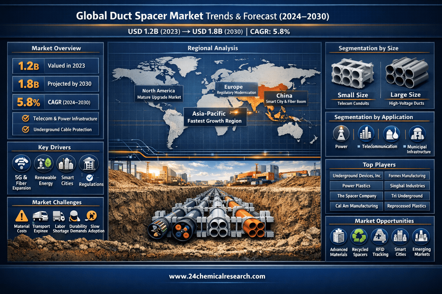 3. Expansion in Emerging Economies: While North America and Europe are mature markets, the Asia-Pacific region (excluding China), Latin America, and parts of the Middle East and Africa represent the next frontier. These regions are undergoing rapid urbanization and are leapfrogging older technologies, directly investing in modern underground utility networks. The demand for duct spacers in these emerging markets is expected to grow at a rate nearly double that of developed regions, offering immense growth potential for companies that can establish a local presence and adapt products to regional specifications and budgets.