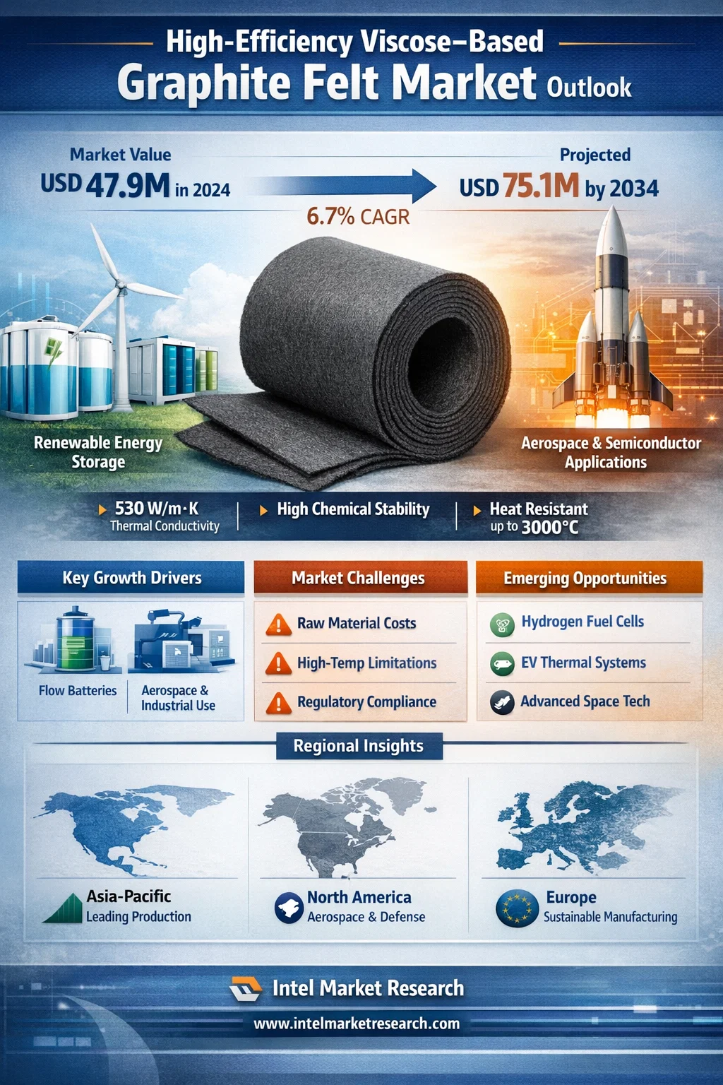 According to a new report from Intel Market Research, the global High-efficiency Viscose-based Graphite Felt market was valued at USD 47.9 million in 2024 and is projected to reach USD 75.1 million by 2034, growing at a CAGR of 6.7% during the forecast period. This growth is fueled by increasing demand in energy storage systems and expanding applications in aerospace and industrial sectors.