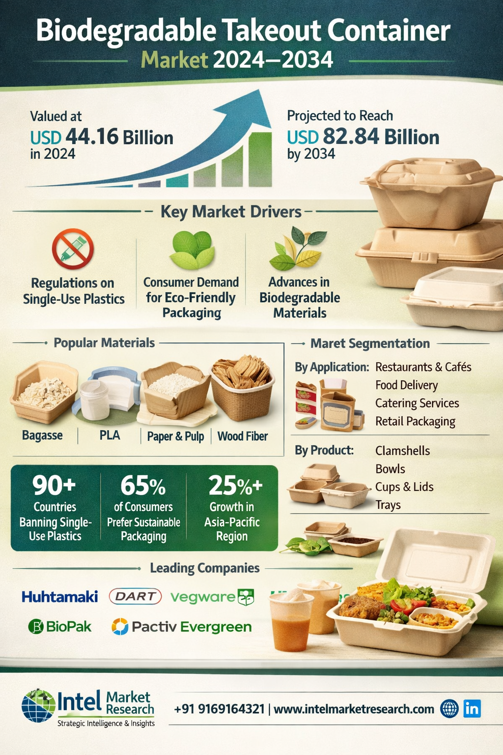 According to a new report from Intel Market Research, the global Biodegradable Takeout Container market was valued at USD 44,160 million in 2024 and is projected to reach USD 82,840 million by 2034, growing at a CAGR of 9.6% during the forecast period (2024–2034). This substantial growth is driven by increasing environmental regulations, rising consumer demand for sustainable packaging, and significant advancements in biodegradable material technologies.