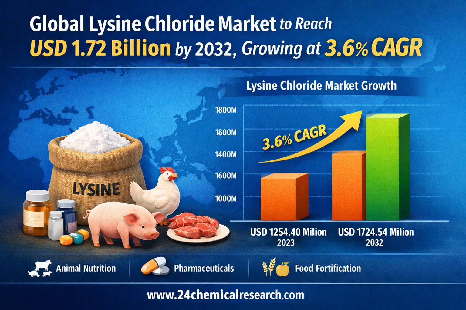 Global Lysine Chloride Market to Reach USD 1.72 Billion by 2032, Growing at 3.6% CAGR