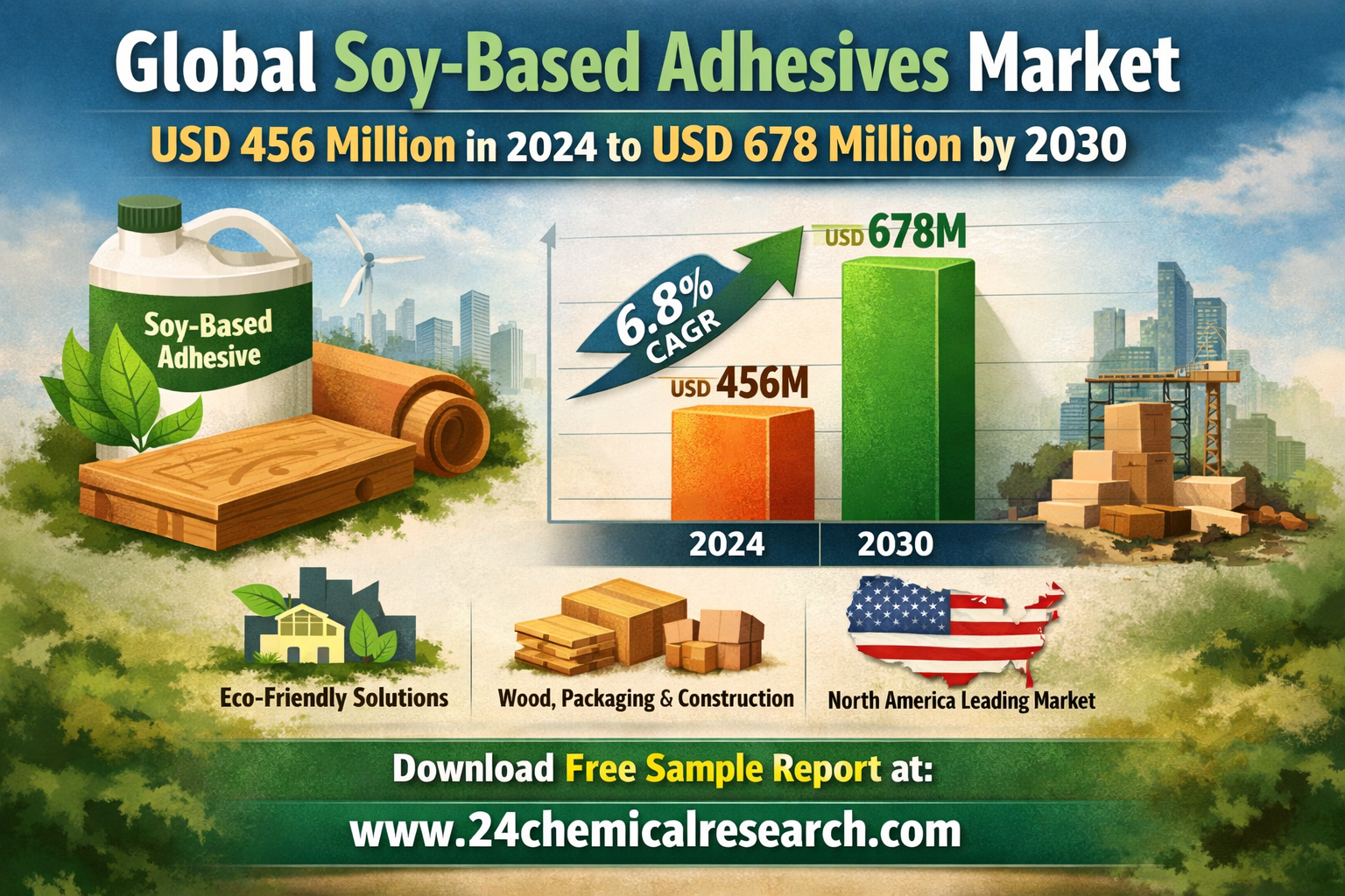 Global Soy-Based Adhesives Market is experiencing significant expansion, with its valuation reaching USD 456 million in 2024. According to the latest industry analysis, the market is projected to grow at a CAGR of 6.8%, reaching approximately USD 678 million by 2030. This upward trajectory is primarily propelled by increasing environmental concerns and the shift towards sustainable manufacturing processes across industries.