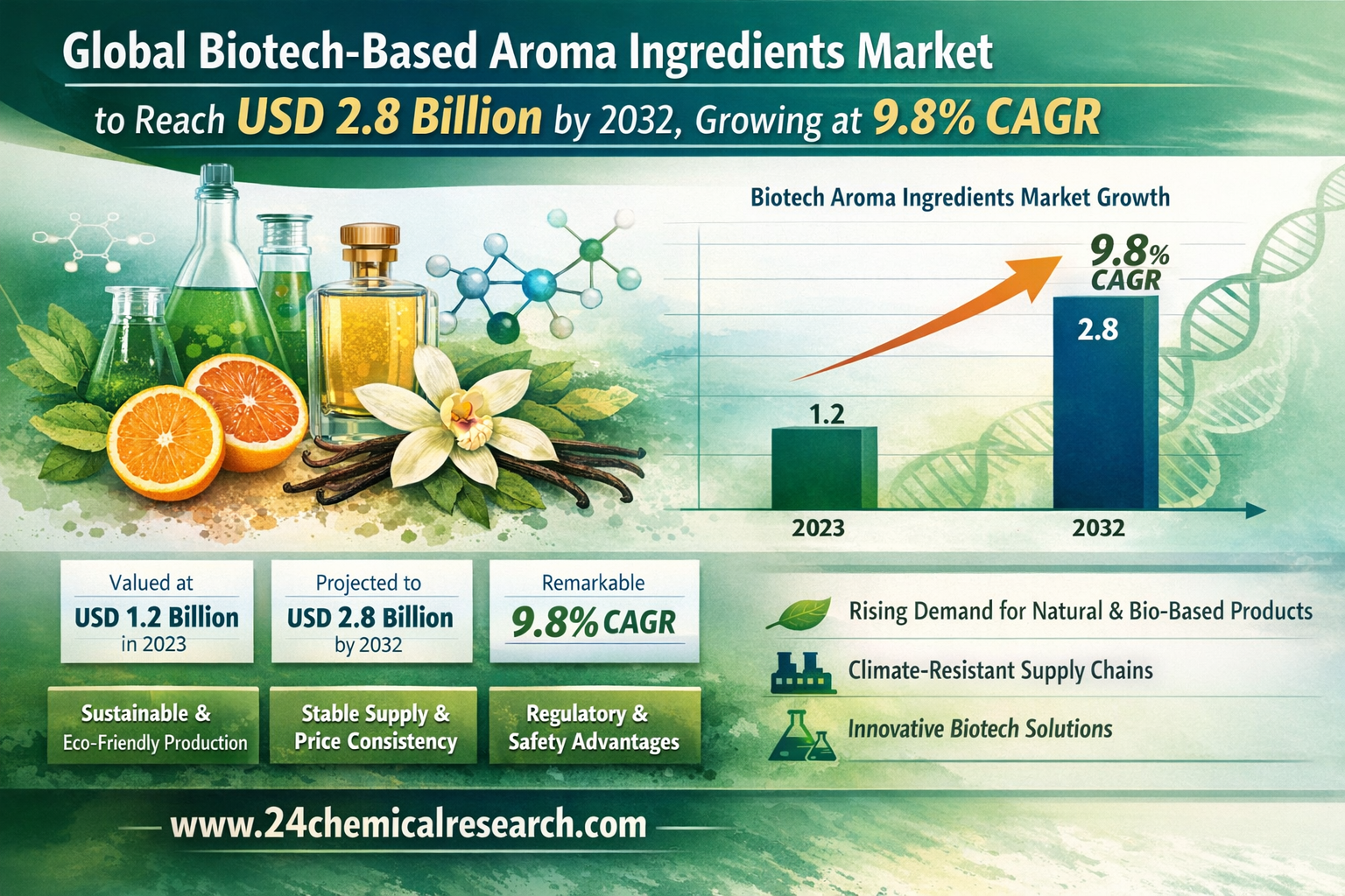 Global Biotech-Based Aroma Ingredients Market to Reach USD 2.8 Billion by 2032, Growing at 9.8% CAGR