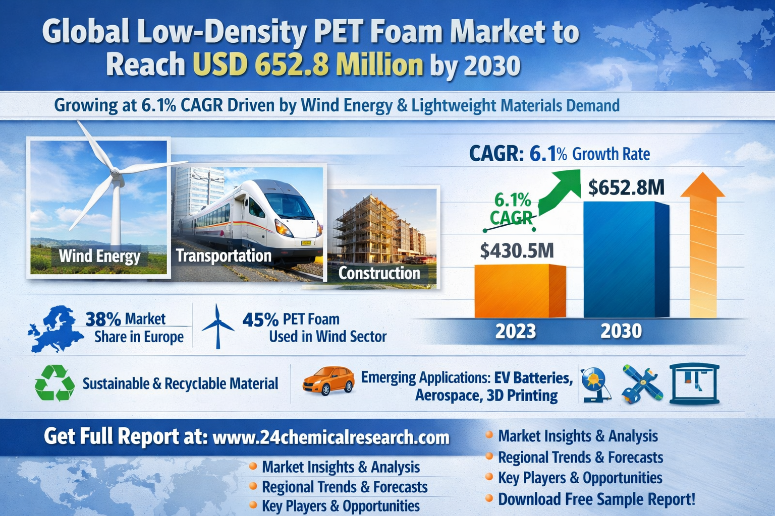 Global Low-Density PET Foam Market to Reach USD 652.8 Million by 2030, Growing at 6.1% CAGR Driven by Wind Energy and Lightweight Materials Demand