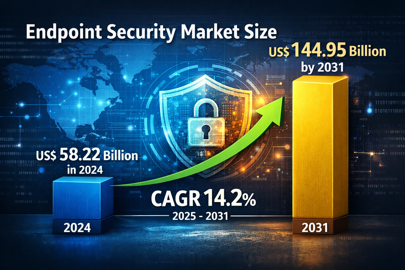 The endpoint security market size is expected to reach US$ 144.95 billion by 2031 from US$ 58.22 billion in 2024. The market is anticipated to register a CAGR of 14.2% during 2025–2031. Vendors are continuously introducing advanced solutions that leverage artificial intelligence (AI), machine learning (ML), and cloud-based architectures to improve threat detection, prevention, and response capabilities. These technological advancements, combined with increasing regulatory requirements and digital transformation initiatives, are driving the expansion of the endpoint security market globally.