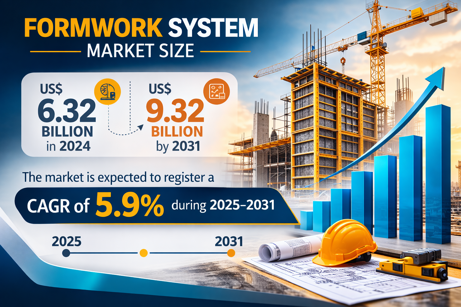 The formwork system market size is projected to reach US$ 9.32 billion by 2031 from US$ 6.32 billion in 2024. The market is expected to register a CAGR of 5.9% during 2025–2031. This steady growth reflects the global push for rapid housing development, the modernization of transport networks, and the increasing adoption of sustainable building materials across various economic corridors.