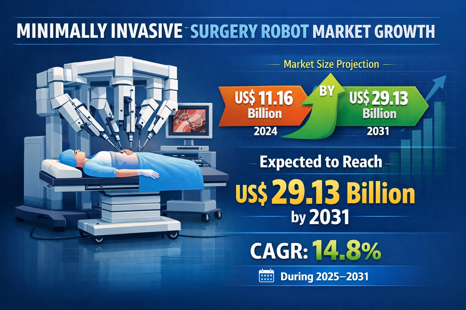 The global minimally invasive surgery robot market is projected to reach US$ 29.13 billion by 2031 from US$ 11.16 billion in 2024, registering a CAGR of 14.8% during 2025–2031. North America remains the largest market due to mature infrastructure and early adoption, while Asia Pacific is expected to be the fastest-growing region driven by rising healthcare investment and expanding hospital networks. Europe, South and Central America, and the Middle East are steadily contributing to global adoption.