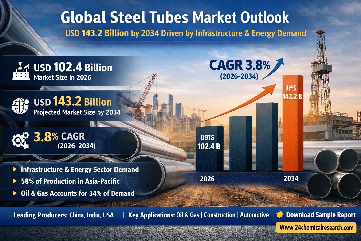 Global Steel Tubes market demonstrates robust growth, currently valued at USD 102.4 billion in 2026, with projections indicating expansion to USD 143.2 billion by 2034, reflecting a 3.8% CAGR across the forecast period. This sustained demand stems from infrastructure development, energy sector requirements, and industrial applications that rely on steel tubes' durability and cost-effectiveness.