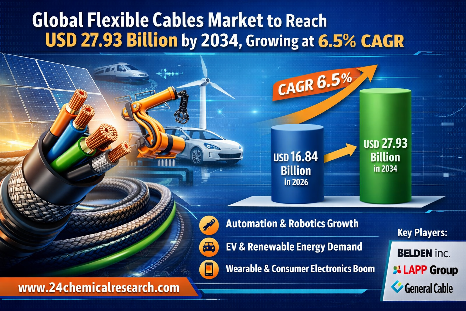 Global Flexible Cables Market to Reach USD 27.93 Billion by 2034, Growing at 6.5% CAGR Driven by Industrial and Energy Demand