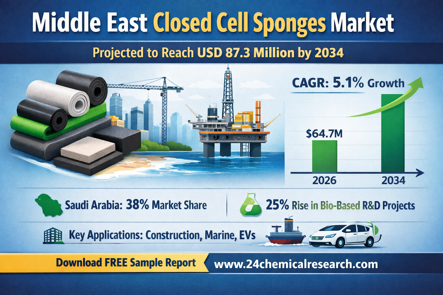 Closed Cell Sponges Market in the Middle East Projected to Reach USD 87.3 Million by 2034 with 5.1% CAGR Growth