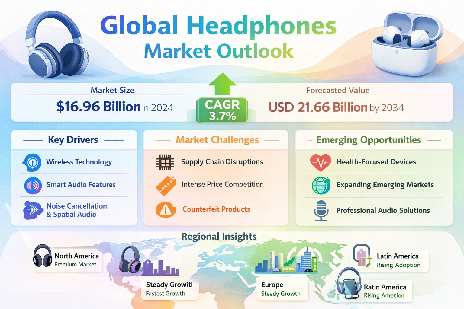- Latin America: Exhibits strong recovery potential post-pandemic, with Brazil and Argentina showing renewed growth in mid-range wireless headphones.