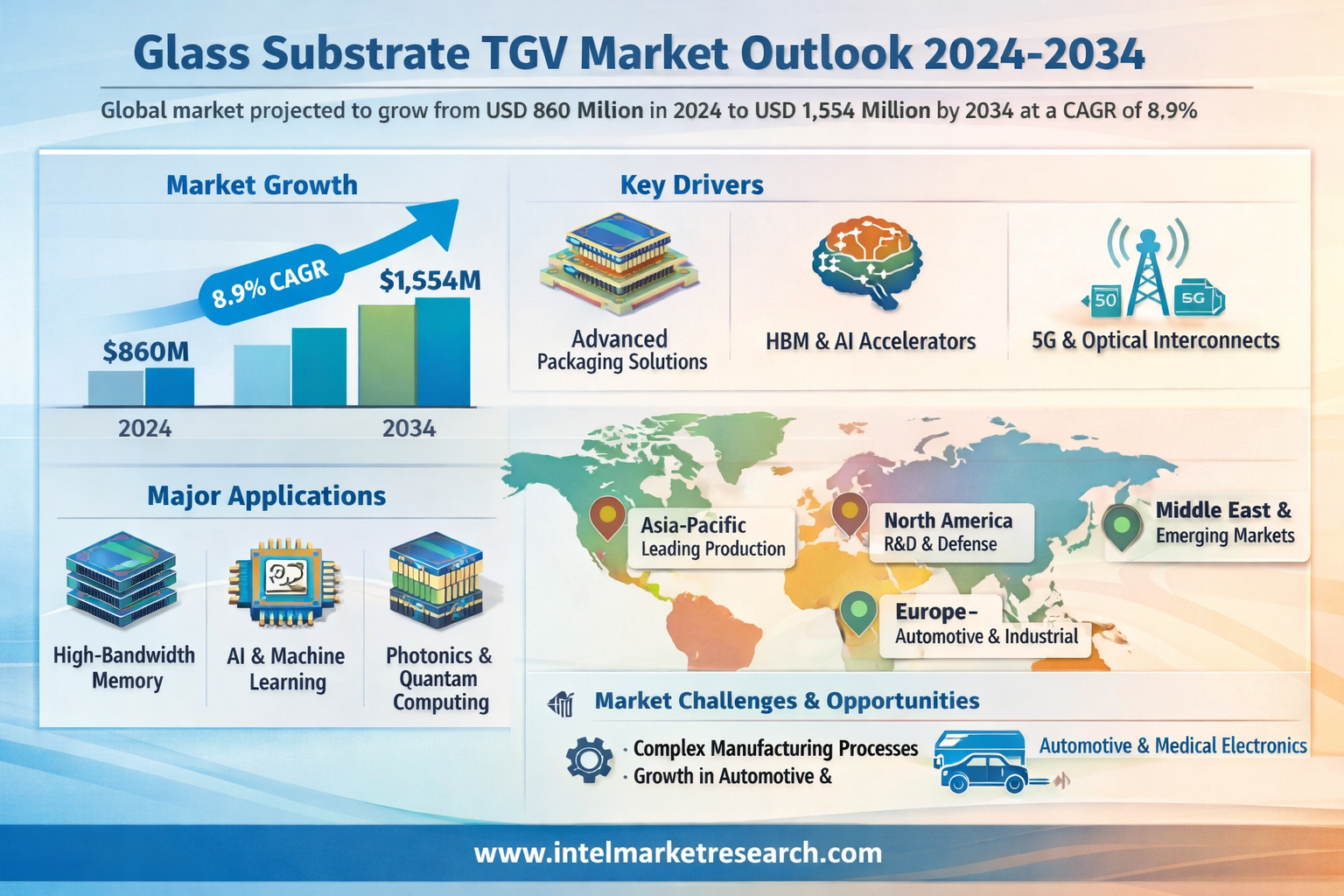 According to a new report from Intel Market Research, the global Glass Substrate TGV market was valued at USD 860 million in 2024 and is projected to reach USD 1,554 million by 2034, growing at a steady CAGR of 8.9% during the forecast period (2025-2034). This growth trajectory underscores the increasing adoption of advanced packaging technologies in semiconductor manufacturing and the rising demand for high-performance computing solutions.