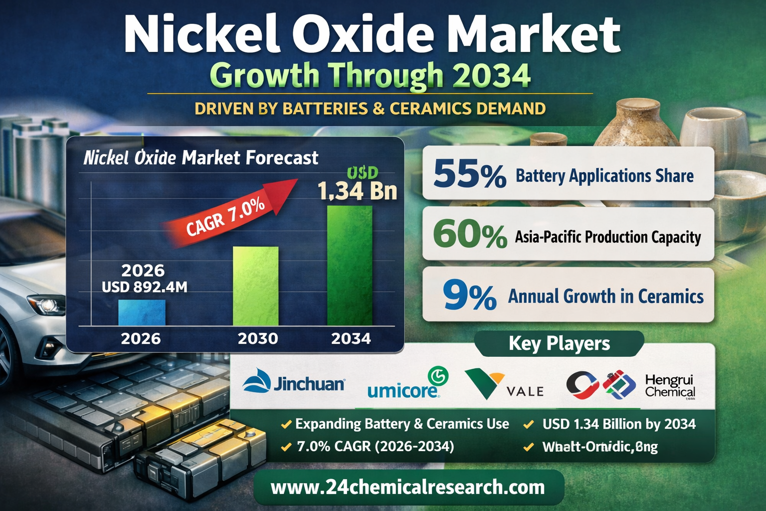 Global Nickel Oxide market continues to demonstrate robust growth, with its valuation reaching USD 892.4 million in 2026. According to industry analysis, the market is projected to grow at a CAGR of 7.0%, reaching approximately USD 1.34 billion by 2034. This growth is primarily driven by expanding applications in batteries, ceramics, and catalytic industries, particularly in regions experiencing rapid industrial development.
