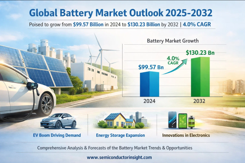 Global Battery Market, valued at USD 99.57 billion in 2024, is advancing steadily toward USD 130.23 billion by 2032. This expansion, marking a compound annual growth rate (CAGR) of 4.0%, is detailed in a comprehensive new report published by Semiconductor Insight. The study emphasizes the indispensable function batteries serve as the core energy component powering modern electronic devices, vehicles, and grid storage systems across the globe.