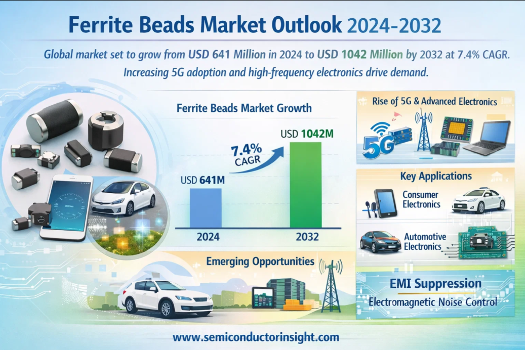 Global Ferrite Beads Market, valued at USD 641 million in 2024, is on a trajectory of significant expansion, projected to reach USD 1042 million by 2032. This growth, representing a compound annual growth rate (CAGR) of 7.4%, is detailed in a comprehensive new report published by Semiconductor Insight. The study highlights the indispensable role these components play in ensuring the electromagnetic compatibility of modern electronic devices.