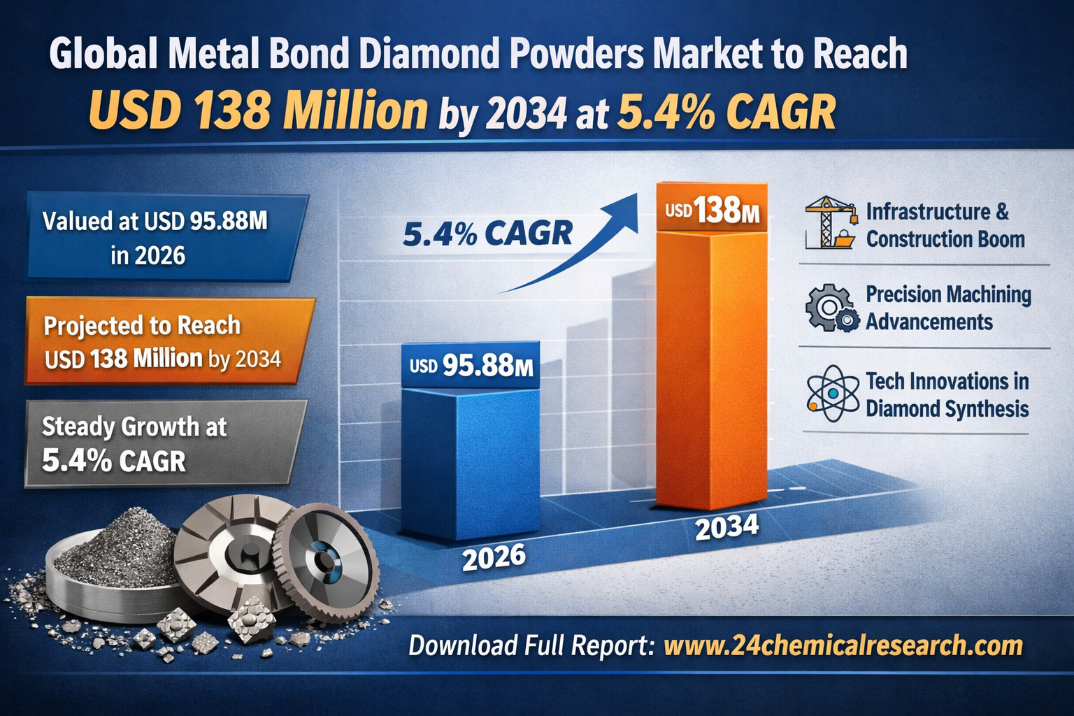 Global Metal Bond Diamond Powders Market to Reach USD 138 Million by 2034 at 5.4% CAGR