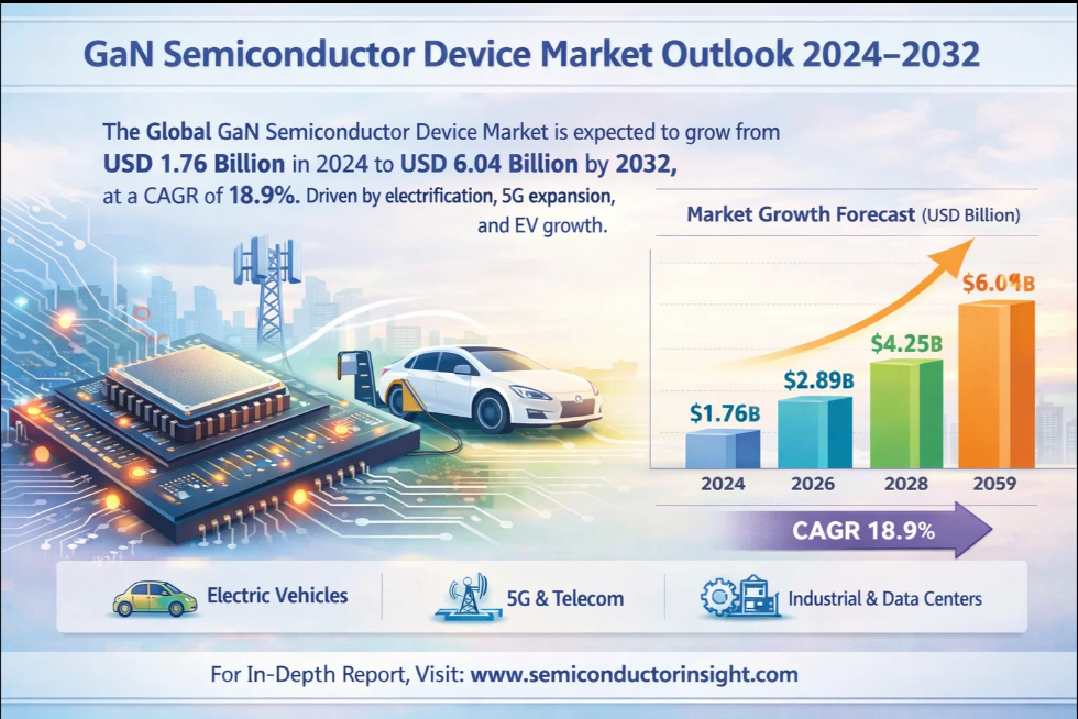 #GaNSemiconductor #GaNMarket #PowerElectronics #RFDevices #SemiconductorIndustry #5GTechnology #ElectricVehicles #DataCenters #EnergyEfficiency #WideBandgap #TechTrends #IndustrialAutomation #AutomotiveTech #SemiconductorGrowth #FutureElectronics