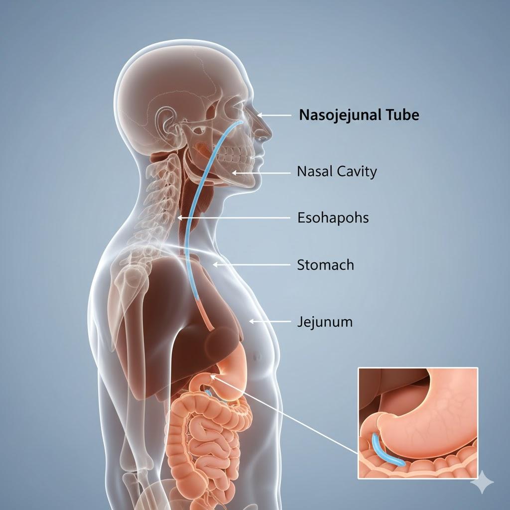 A nasojejunal tube is a flexible, small‐bore feeding tube inserted through the nose and passed into the jejunum, enabling early enteral feeding for patients unable to consume food orally. The rising adoption of these tubes is closely linked to the increasing burden of conditions such as acute pancreatitis, gastroparesis, gastric outlet obstruction, and other GI motility disorders. Since nasojejunal tubes bypass the stomach, they are especially preferred for patients who require post‐pyloric feeding or are at high risk of aspiration—making them indispensable in critical care settings and emergency departments.