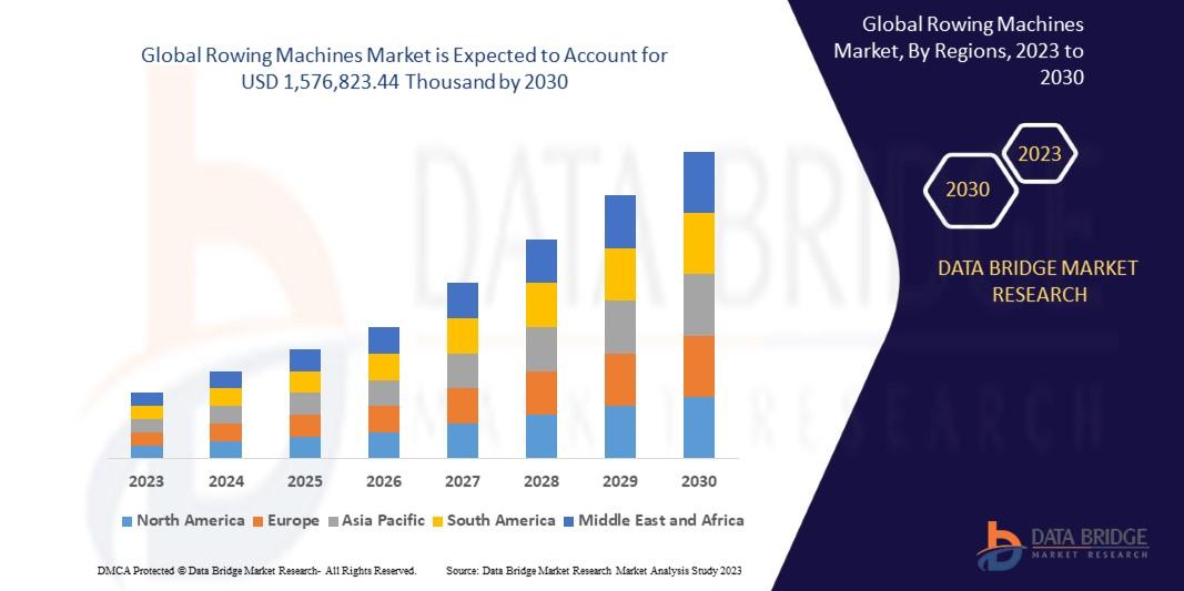 The global rowing machines market is expected to grow significantly in the forecast period of 2023 to 2030. Data Bridge Market Research analyzes that the market is growing with a CAGR of 5.0% in the forecast period of 2023 to 2030 and is expected to reach USD 1,576,823.44 thousand by 2030.