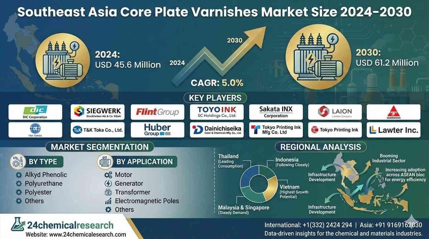 Core plate varnishes, essential insulating coatings for electrical steel laminations in transformers and motors, are gaining traction across Southeast Asia. The market's steady expansion mirrors the region's rapid infrastructure development, particularly in power generation and distribution sectors. While Thailand and Vietnam emerge as primary growth engines, the entire ASEAN bloc shows increasing adoption of these specialized coatings to enhance energy efficiency in electrical equipment.