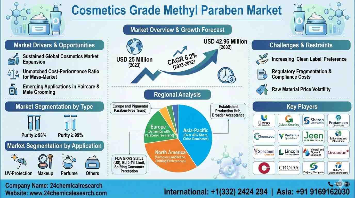 Get Full Report Here: https://www.24chemicalresearch.com/reports/283414/global-cosmetics-grade-methyl-paraben-market-2025-2032-185