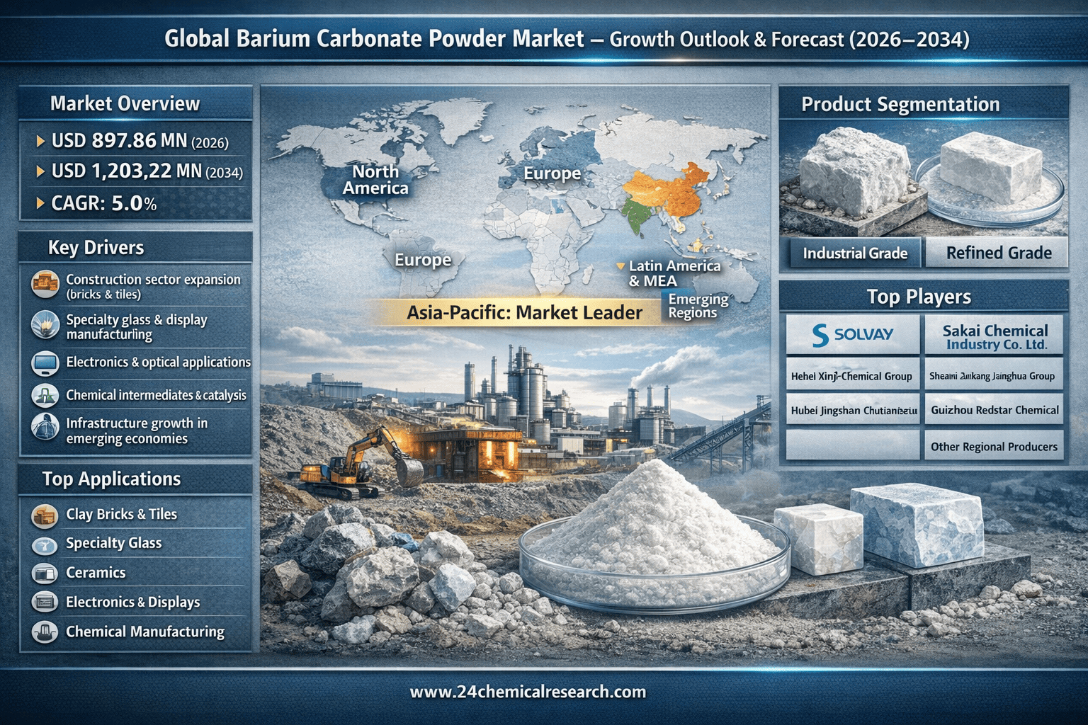 According to 24Chemical Research, Global Barium Carbonate Powder Market Size was estimated at USD 897.86 million in 2026 and is projected to reach USD 1203.22 million by 2034, exhibiting a CAGR of 5.00% during the forecast period.