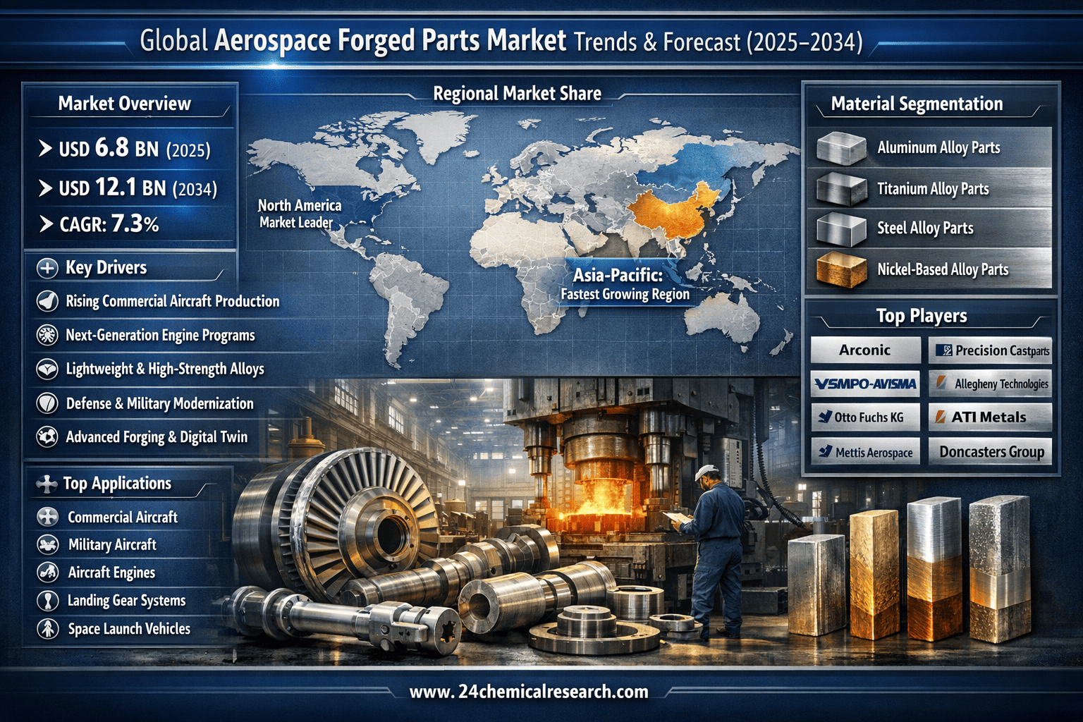 According to 24Chemical Research, Global Aerospace Forged Parts Market size was valued at USD 6.8 billion in 2025 and is projected to grow from USD 7.3 billion in 2026 to USD 12.1 billion by 2034, exhibiting a CAGR of 7.5% during the forecast period.