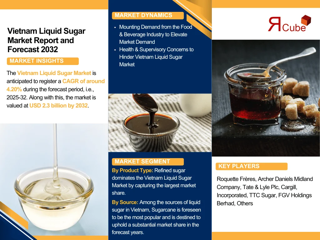 Vietnam Liquid Sugar Market is anticipated to register a CAGR of around 4.20% during the forecast period, i.e., 2025-32. Along with this, the market is valued at USD 2.3 billion by 2032.