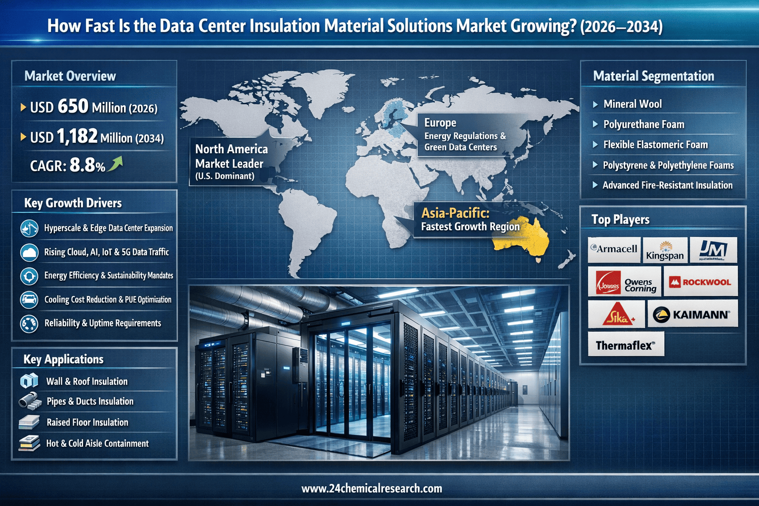 According to 24Chemical Research, Global Data Center Insulation Material Solutions market was valued at USD 650 million in 2026 and is projected to reach USD 1,182 million by 2034, exhibiting a remarkable CAGR of 8.8% during the forecast period.