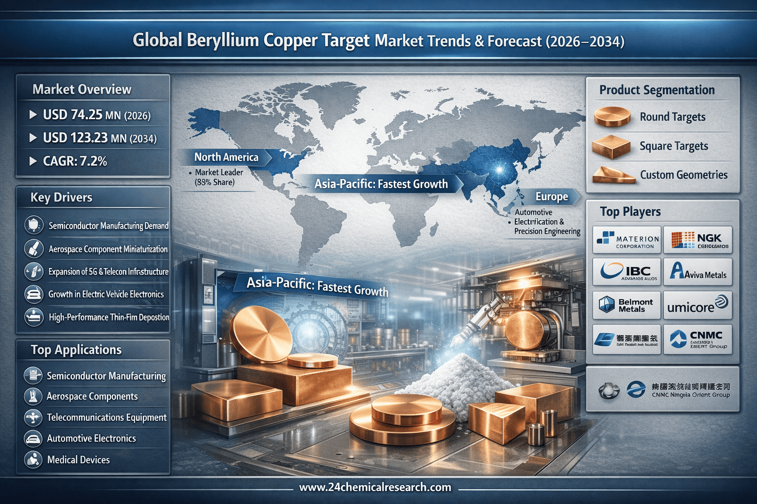 According to 24Chemical Research, Global Beryllium Copper Target market demonstrates robust expansion, with its valuation reaching USD 74.25 million in 2026. According to latest industry analysis, the market is projected to grow at a CAGR of 7.2%, reaching approximately USD 123.23 million by 2034. This growth trajectory is driven by increasing applications in aerospace, telecommunications, and high-performance electronics, particularly in regions emphasizing advanced manufacturing capabilities.
