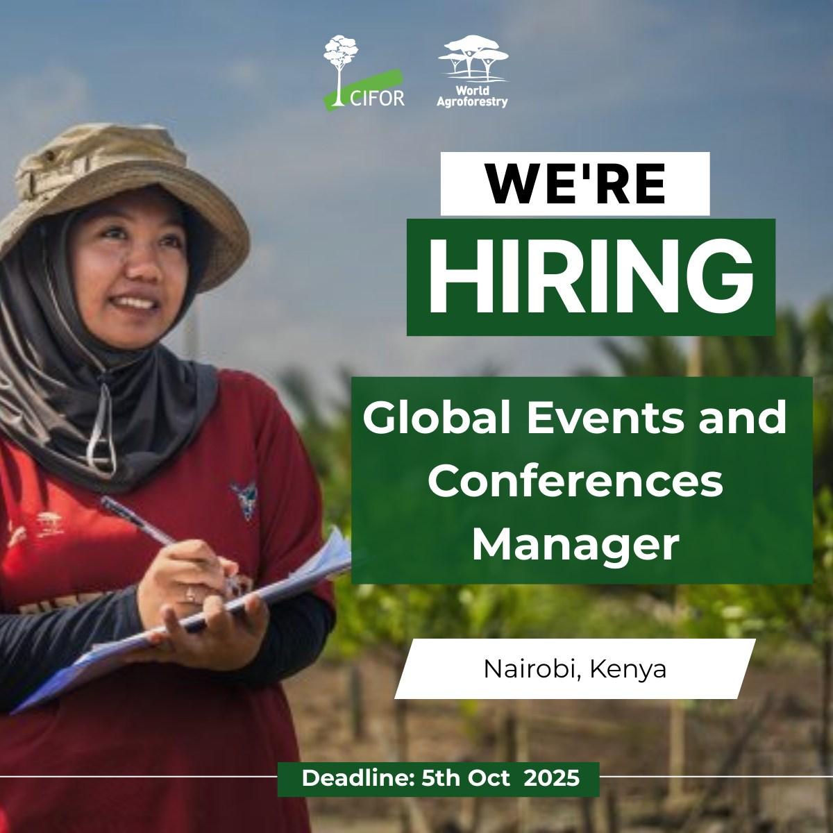 #Hiring #EventsManager #Conferences #Communications #JoinUs Voir moinsWe’re hiring! CIFOR-ICRAF is looking for a Global Events and Conferences Manager to join our dynamic Communications, Outreach and Engagement team. This is an exciting opportunity to: ✨ Lead the planning and delivery of impactful global events and conferences ✨ Work with scientists and partners to amplify evidence on climate, biodiversity, and food security ✨ Manage communications strategies, budgets, and logistics for events of global significance 📍 Location: Nairobi, Kenya (or Bonn, Germany / similar time zone) 📅 Application deadline: 5 October 2025 If you’re an experienced events professional with strong communications skills and a passion for creating memorable, high-impact conferences, we’d love to hear from you. Apply now:🔗 https://bit.ly/4gFj5TY #Hiring #EventsManager #Conferences #Communications #JoinUs Voir moins0 Комментарии 0 Поделились 83 Просмотры 0 предпросмотрВойдите, чтобы отмечать, делиться и комментировать! -