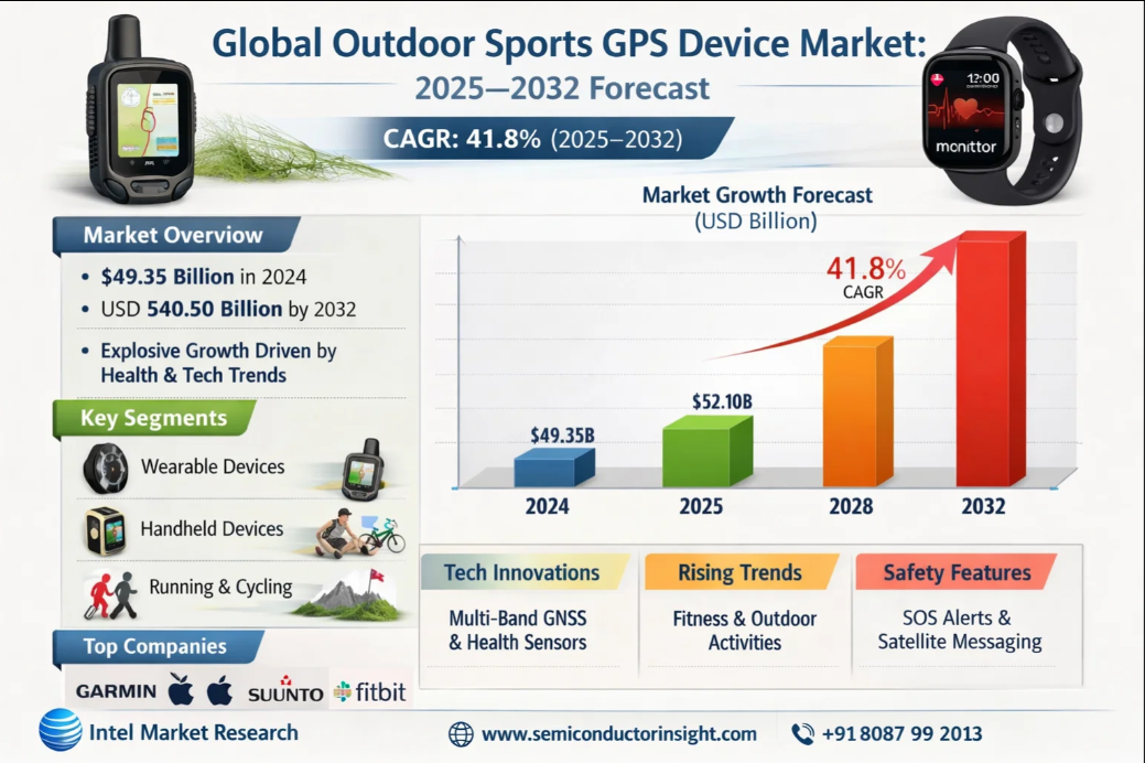 Outdoor Sports GPS Device Market to Hit $540.5B by 2032 Driven by Wearables and Fitness Tech Boom Global Outdoor Sports GPS Device Market, was valued at USD 49.35 billion in 2024. The market is projected to grow from USD 52.10 billion in 2025 to USD 540.50 billion by 2032, exhibiting a compound annual growth rate (CAGR) of 41.8% during the forecast period, as detailed in a comprehensive new report from Intel Market Research. This explosive growth is primarily fueled by the global surge in health consciousness, the rising popularity of outdoor recreational activities, and continuous technological advancements making devices more accessible and feature-rich. Read Full Report: https://semiconductorinsight.com/report/outdoor-sports-gps-device-market/ 🌐 Website: https://semiconductorinsight.com/ 📞 International: +91 8087 99 2013 🔗 LinkedIn: Follow Us #OutdoorSportsGPS #GPSDeviceMarket #WearableTechnology #FitnessTechnology #SportsTech #SmartwatchTechnology #OutdoorAdventure #RunningTechnology #CyclingTech #HikingGear #HealthAndFitnessTech #ConsumerElectronics #GPSNavigation #TechMarketGrowth #DigitalFitness #GlobalMarket #IntelMarketResearch