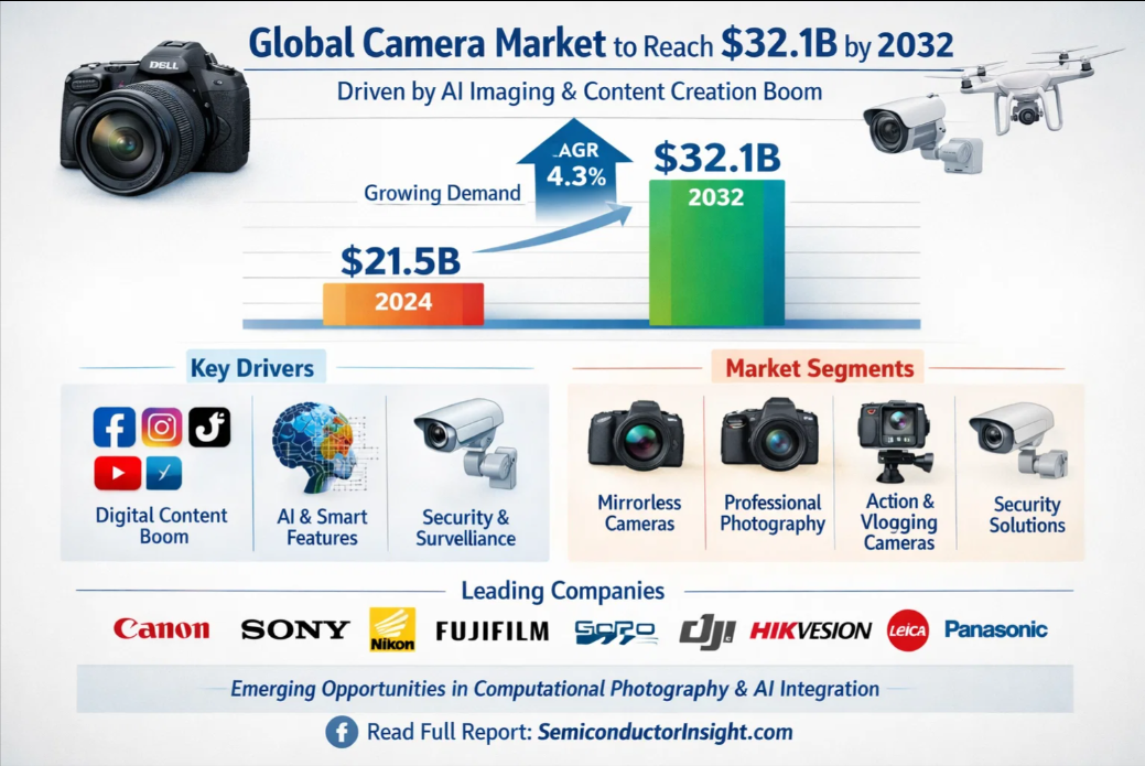 Global Automotive Camera & Camera Module Market, valued at a robust USD 8.99 billion in 2024, is on an aggressive growth trajectory, projected to reach USD 33.36 billion by 2032. This expansion, representing a compound annual growth rate (CAGR) of 21.1%, is detailed in a comprehensive new report published by Semiconductor Insight. The study underscores the indispensable role these vision systems play in enabling advanced driver-assistance systems (ADAS) and the progression towards autonomous driving. This growth is primarily fueled by escalating safety regulations worldwide and the consumer's growing appetite for vehicle safety and convenience features.