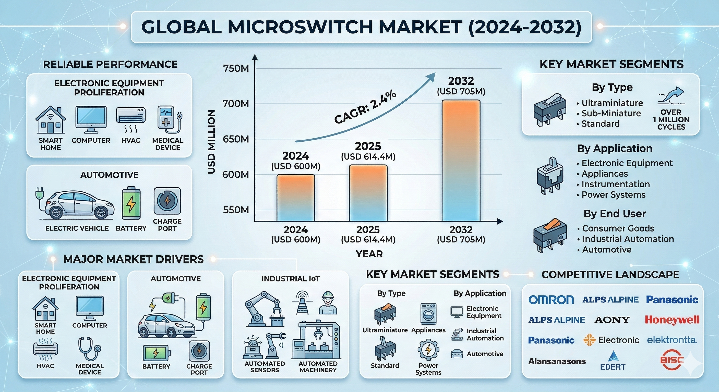 Microswitch Market to Reach $705M by 2032 as Demand Rises in Electronics, Automotive, and Industrial IoT