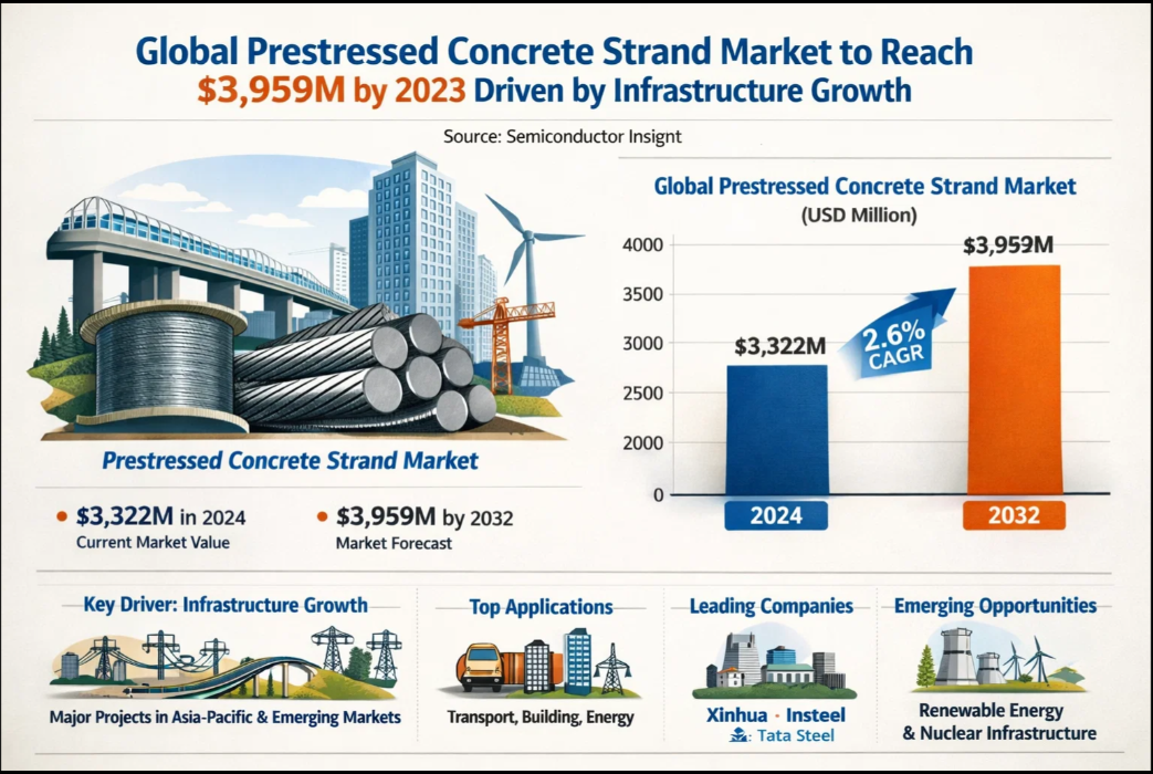 #PrestressedConcreteStrand #ConcreteMarket #ConstructionIndustry #InfrastructureDevelopment #BuildingMaterials #EngineeringInnovation #GlobalMarketGrowth #ConstructionTechnology #InfrastructureProjects #MarketResearch #SemiconductorInsight #IndustrialMaterials