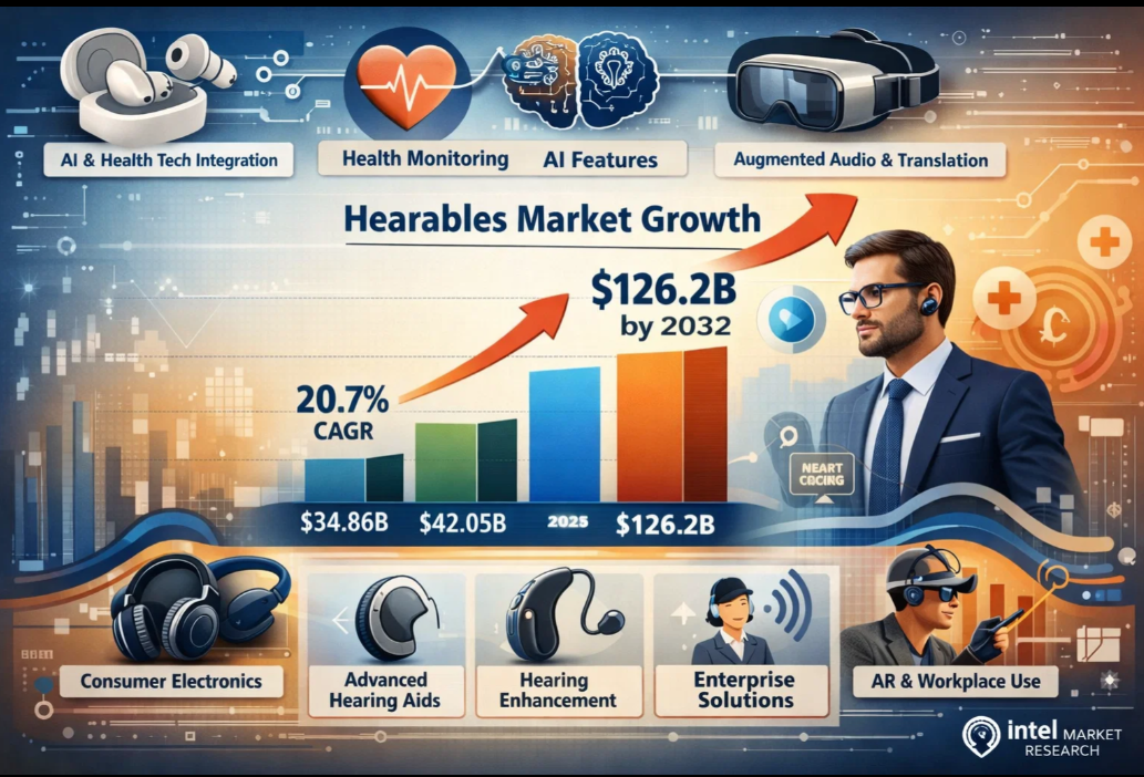 #HearablesMarket #WirelessEarbuds #SmartHeadphones #AudioTechnology #ConsumerElectronics #HearingAids #HealthTech #AIInAudio #WearableTechnology #BluetoothDevices #ARAudio #DigitalHealth #TechInnovation #MarketResearch #ConsumerTech